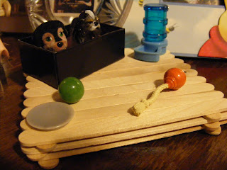 During Britches' free time for the last few months, she has been creating miniatures. Miniatures are like doll houses - furniture, house, dishes, whatever. Neither of my older kids have ever liked having something handed to them already made, but would prefer to create their own play things. So she has been in her room in much of her spare time working on her doll clothes and furniture. I just had to show you a little of what she has done.